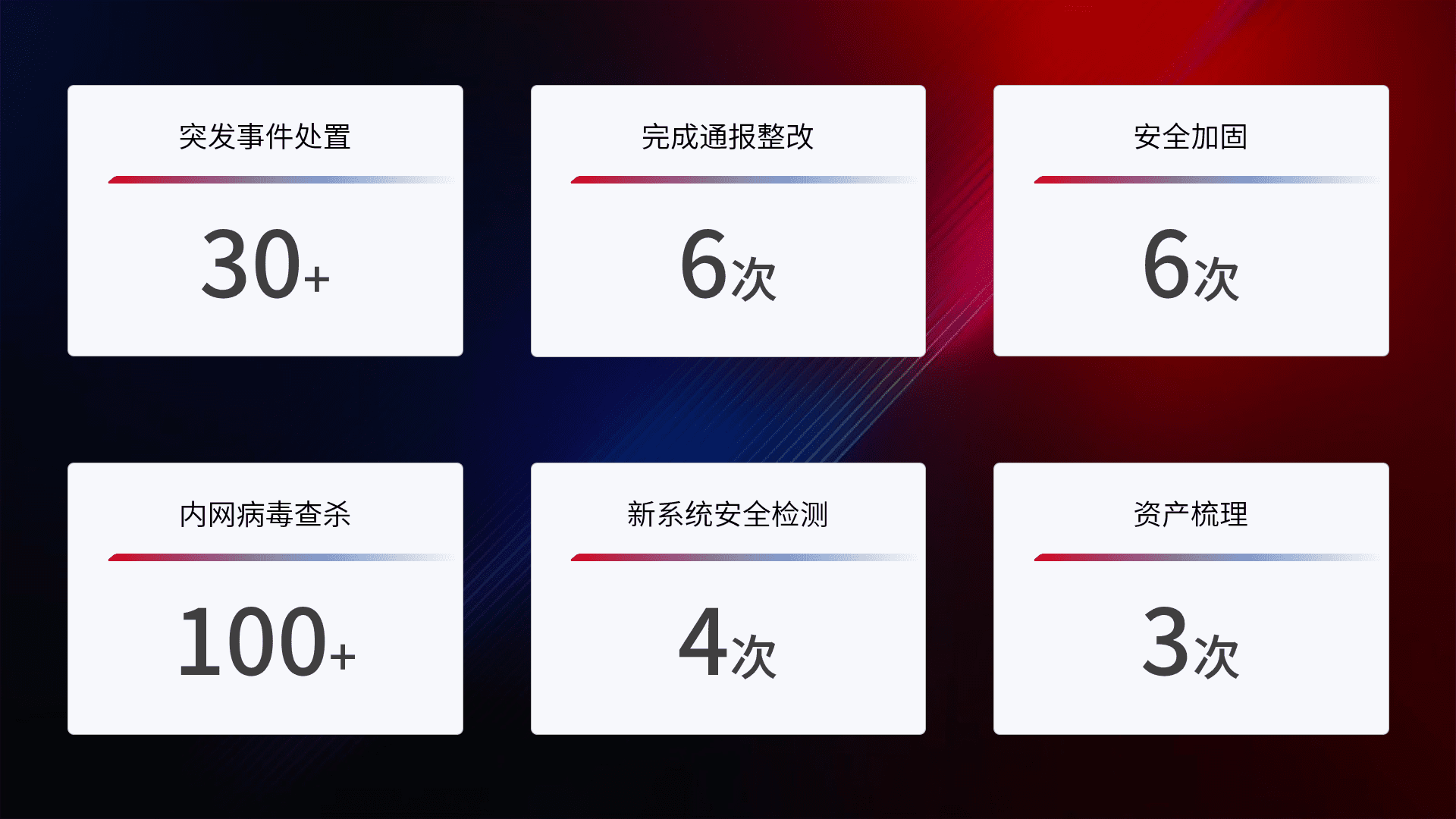 根据客户需求定制整改方案,,,,强化应急演练,,,,提升网络安全事件应对能力。。。。